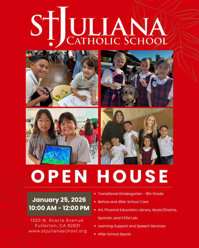 Come see what makes St. Juliana Catholic School special — where students grow, learn, and thrive from TK through 8th grade!